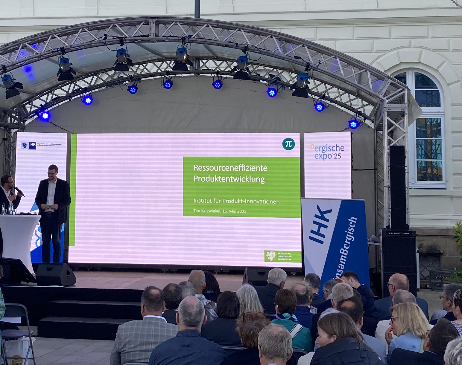 Wir haben uns sehr über die Gelegenheit zur Teilnahme an der Bergischen Expo 2025 gefreut, bei der Dr.-Ing. Tim Katzwinkel unter dem Titel „Ressourceneffiziente Produktentwicklung“ Einblicke in aktuelle Herausforderungen und Chancen nachhaltiger Produktentwicklung geben durfte. In unserem aktuellen Forschungsprojekt bergisch.kompetenz möchten wir einen aktiven Beitrag zur Installation von Kreislaufwirtschaftskonzepten im Bergischen Land beitragen.